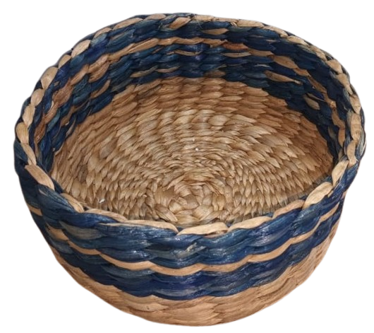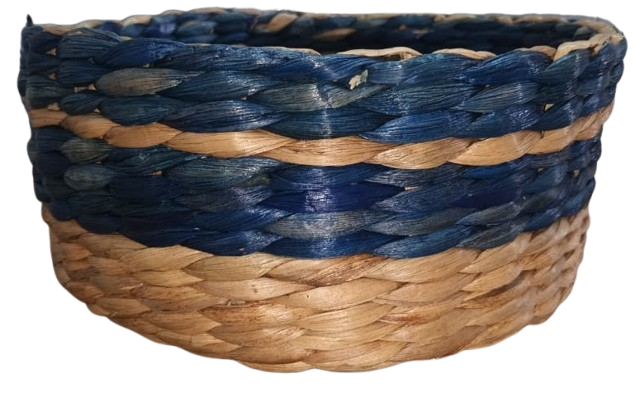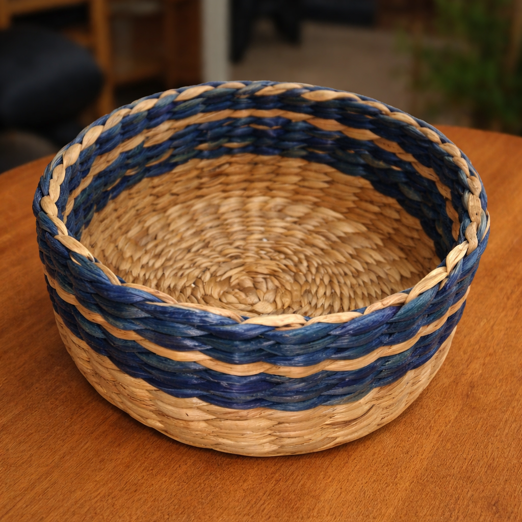 Handwoven Natural Fiber Basket with Blue Accent