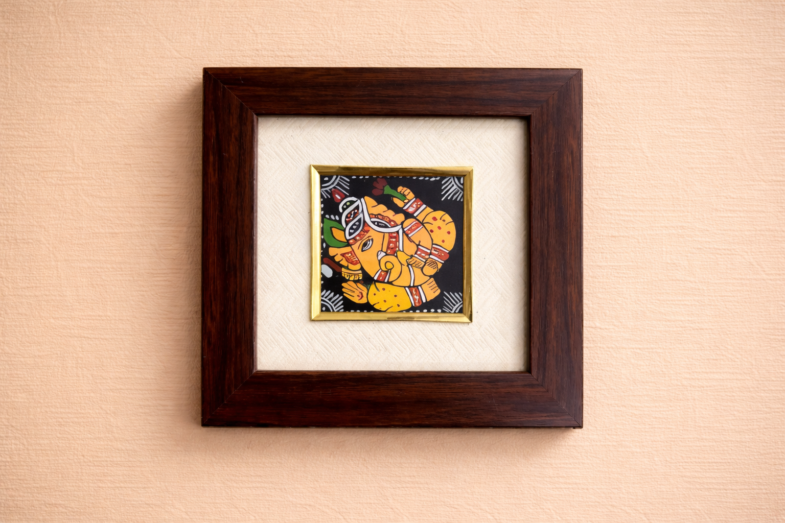 Enhance your décor with this beautifully crafted Tikuli Ganesha Folk Art Painting, inspired by the rich heritage of traditional Indian tribal art. The artwork portrays Lord Ganesha in vibrant earthy tones and intricate line motifs, symbolizing wisdom, prosperity, and new beginnings — hallmarks of Tikuli artistry.