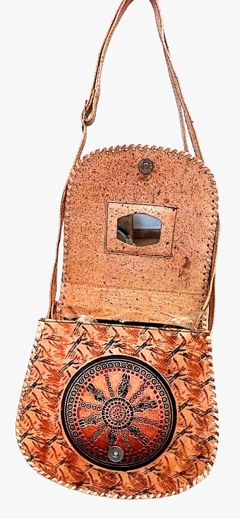 | Handcrafted Cross-body Sling Bag – Tribal Wheel Motif