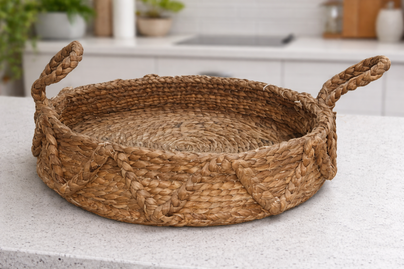 Color: Natural golden-brown jute tone, Serving tray for fruits, bread, snacks