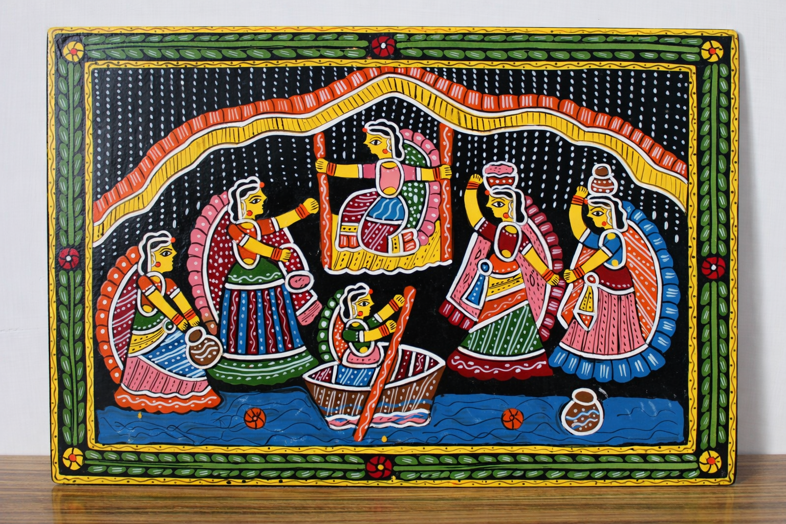This product features a beautifully hand-painted tikuliartwork in traditional Indian folk-art style, likely inspired byMithila painting.This stunning tikulishowcases a vibrant scene from traditional Indian village life, painted in the rich and expressive Madhubani  folk-art style. The artwork is filled with bold colors, intricate patterns, and storytelling elements that celebrate culture and heritage.Art Style: Madhubani/Mithila folk painting