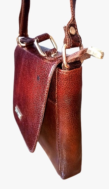 Premium textured leather construction, Rich brown colour with minimalist design, Secure main compartment with flap closure, Adjustable shoulder strap for comfort, Durable metal hardware and neat stitching, Ideal for daily use, work, or travel